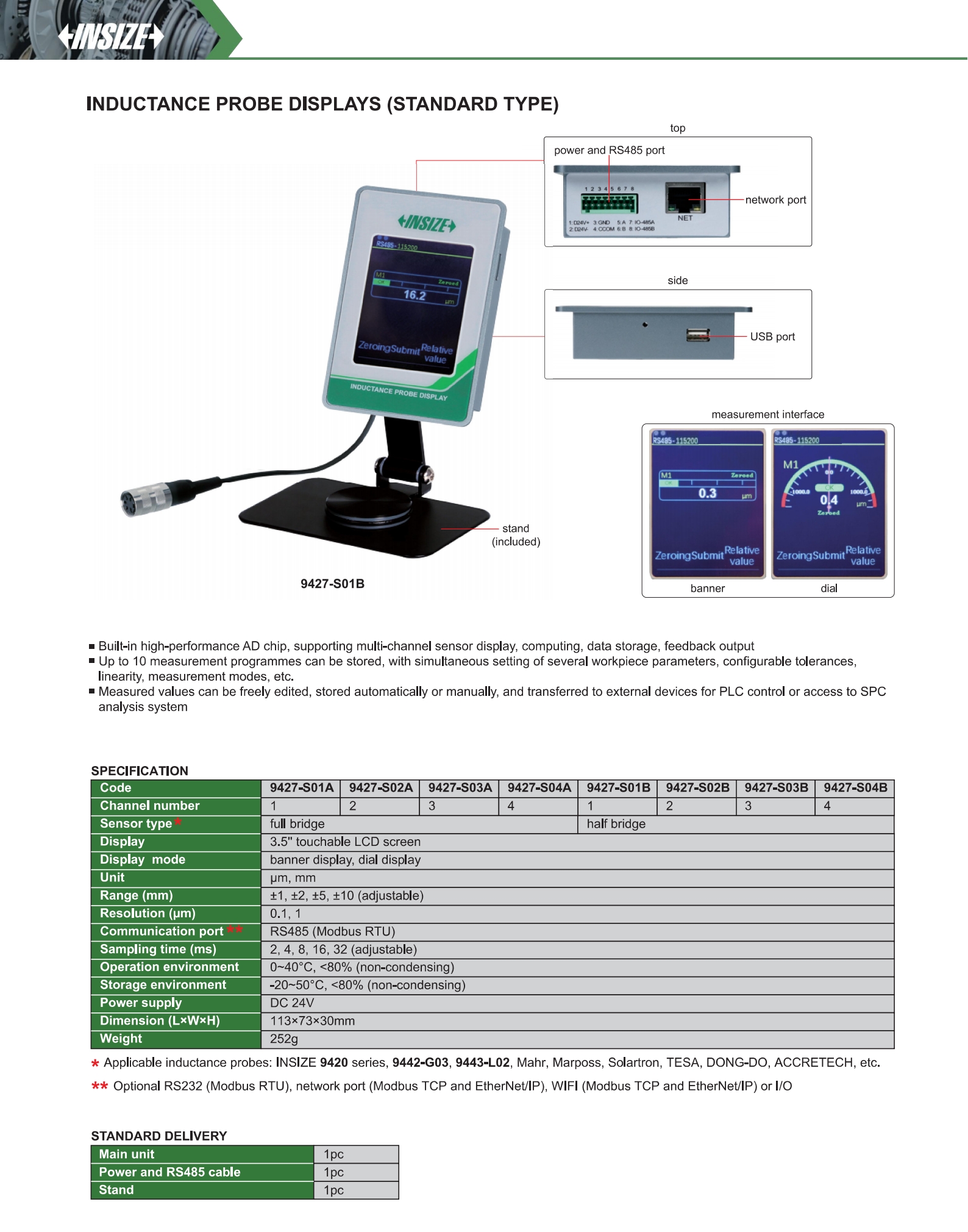 Inductance Probe Displays (Standard Type)